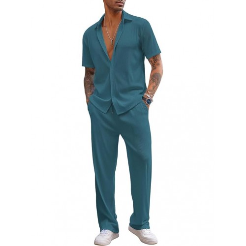 Solid Casual Summer Wear Coords Stylish Gents Cord Set Half Sleeves Latest Track Suit Polo Neck Western Co-ord Track Pant and Shirt Set